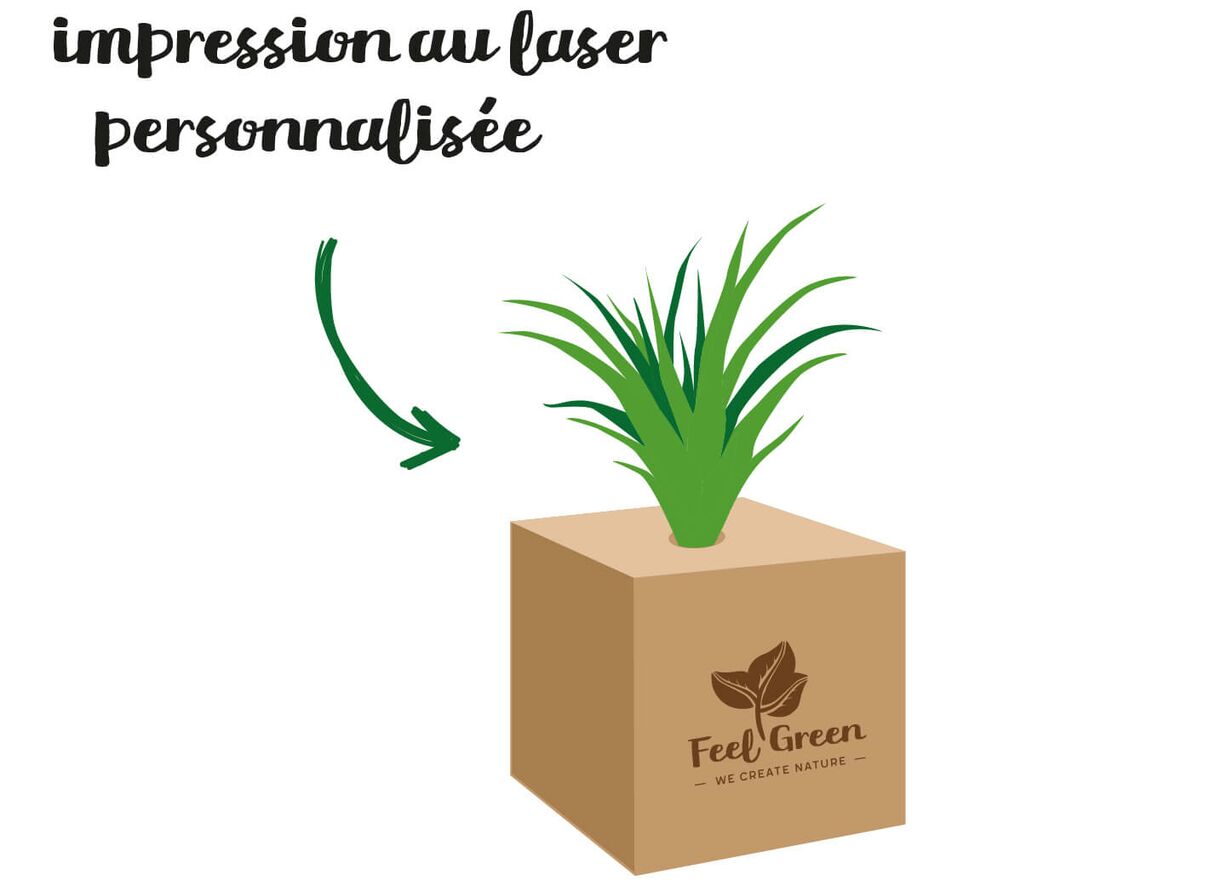 Grâce à une gravure au laser, cet objet de décoration vivant devient porteur de ton message (publicitaire) durable. De plus, il est possible d'ajouter une banderole personnalisée et/ou une petite carte personnalisé pour l'emballage.