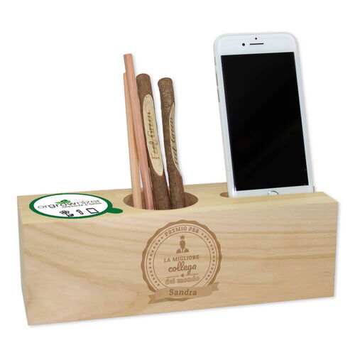 Premio per la migliore collega del mondo! Che si tratti di un regalo per i tuoi dipendenti, di ringraziamento o d'addio, di compleanno o una piacevole via di mezzo – la migliore collega del mondo sarà onorata di ricevere questo regalo originale! Questo gadget green non passa di certo inosservato! Farà bella mostra di sé sulla scrivania e ricorderà alla tua collega tutti i momenti divertenti trascorsi insieme in ufficio! Il Desk Organizer offre spazio sufficiente per numerose penne e uno smartphone e contiene già tutti i componenti necessari per piantare un piccolo giardino in un batter d'occhio.