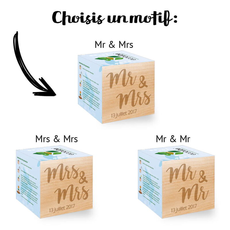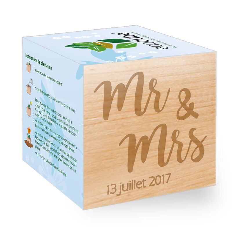 Un toast aux jeunes mariés! Notre ecocube est définitivement un cadeau de mariage exceptionnel pour tous les jeunes mariés. Pendant la culture du set, il vous rappelle cette belle journée et tous les moments de bonheur. Non seulement votre amour s'épanouira mais le cube en bois à tout pour plaire.