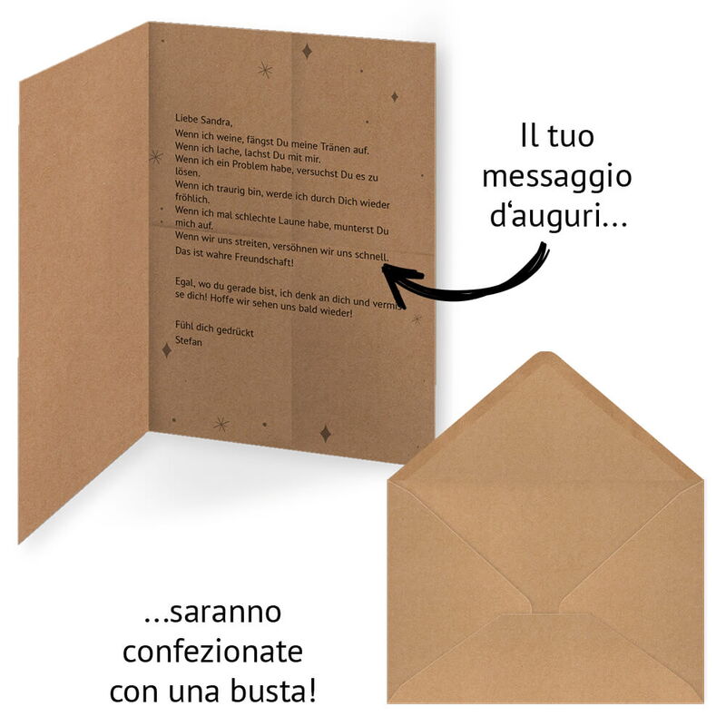 Materiale: carta kraft (marrone) 150g/m², stampa fronte e retro (interno personalizzato)