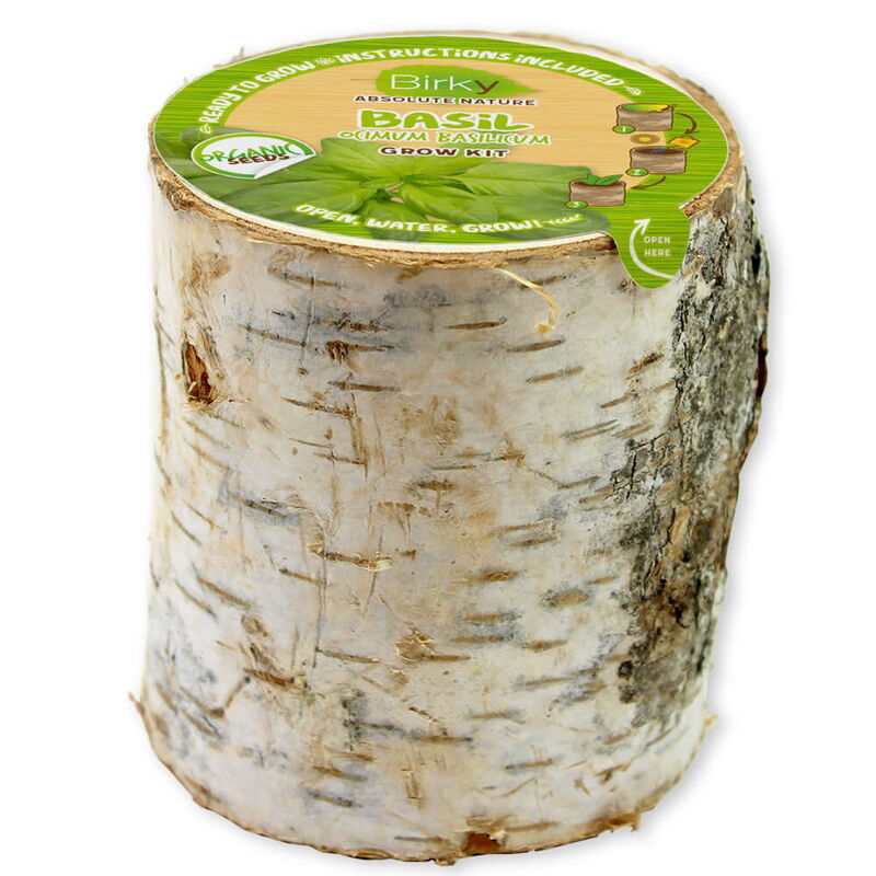 Birky contains coconut fiber granulate, clay granulate, compostable planting pot and plant seeds.