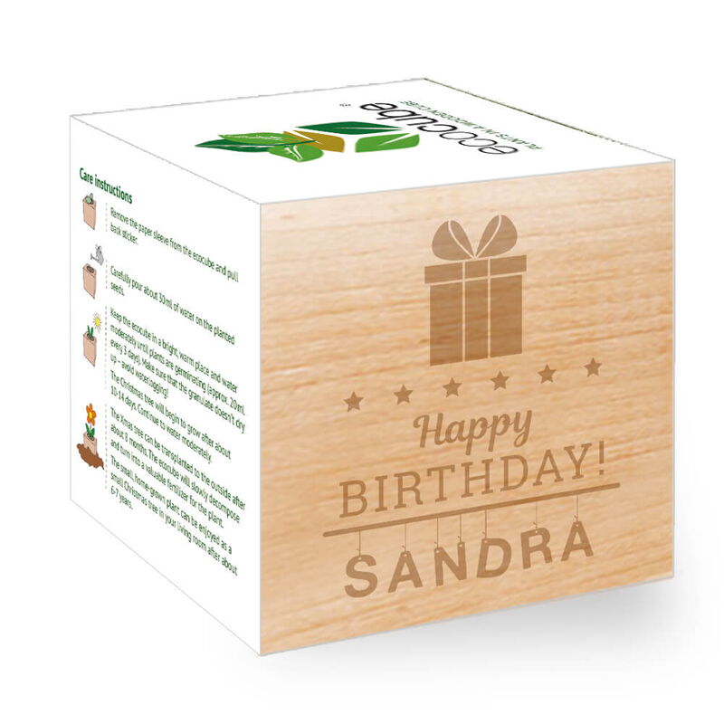 - The left side of the plant cube will be engraved with your personalization and turns the ecocube into a special memento and an original gift.