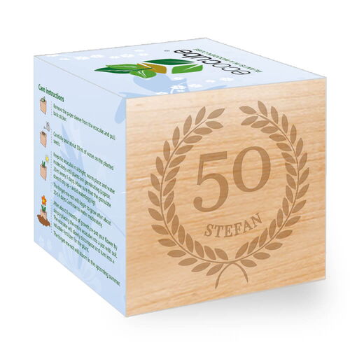 - The left side of the plant cube will be engraved with your personalization and turns the ecocube into a special memento and an original gift.