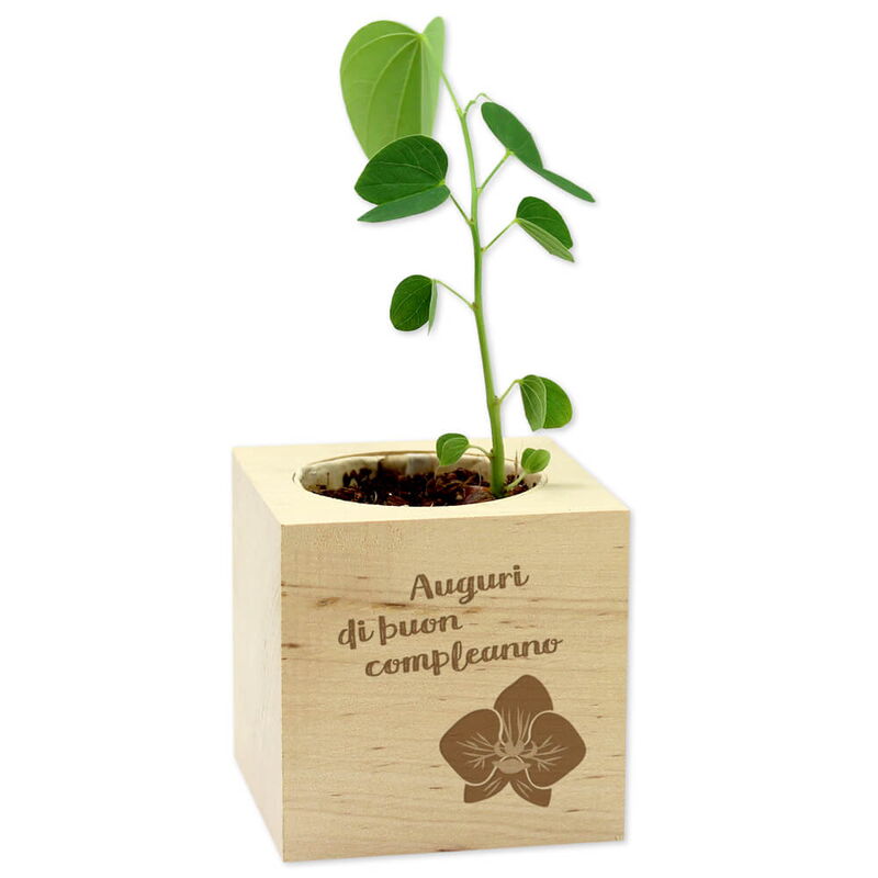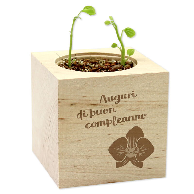 • Non appena la pianta diventa troppo grande per l'ecocube, rimuovi la piantina con il vasetto biodegradabile nel quale si trova e trapianto in un vaso da fiori più grande con l'aggiunta di un po' di terriccio. Potrai usare l'ecocube come portapenne o in mille altri modi!
