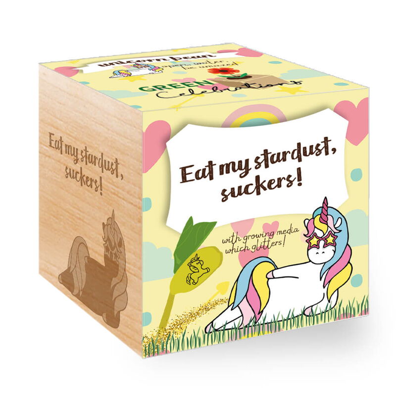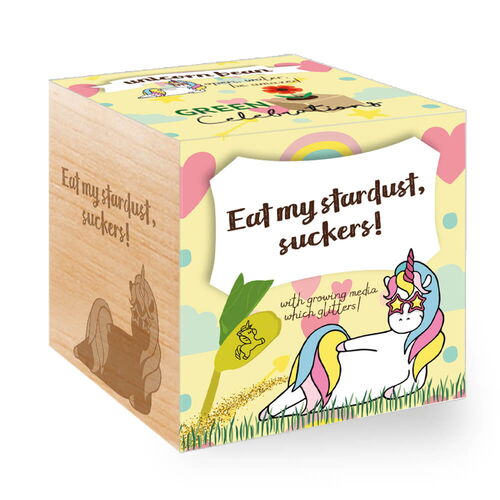 Green Celebrations contains coconut fiber granulate, clay granulate, compostable planting cup and a unicorn bean.