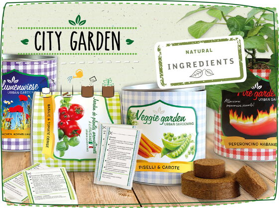 Même si le City Garden est emballé dans la boîte, il n'a absolument rien à voir avec Instant Food – il est même le contraire de cela. Les Grow Kits en style rétro offrent à chacun la possibilité de cultiver des plantes aromatiques fraîches et des légumes croquants sur le rebord de la fenêtre et ainsi d'effectuer sa propre récolte après peu de temps.