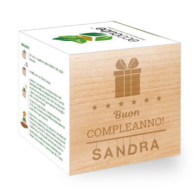 - Il lato sinistro del cubo è personalizzato con la tua personalizzazione e rende l'ecocubo un ricordo speciale e un regalo originale.