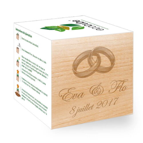 Tu cherches toujours un cadeau de mariage exceptionnel et unique pour un mariage? Offre aux jeunes mariés heureux un ecocube personnalisé qui n'épanouiront pas seulement leur amour! Le cube durable ne procure pas seulement du plaisir lors de la culture, mais dès que la plante aura poussé, elle deviendra une décoration pour toute la maison.