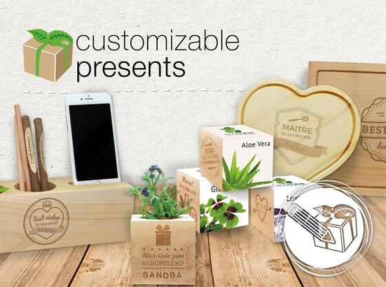 Each personalized natural present is an individual wooden product. That's why every wood grain and every laser engraving differ from each other. For that reason, each of these natural presents is an exceptional and unique item.