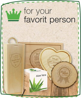 Create a suitable natural present instantly for an upcoming event. Choose between our decorative discs made of bark, useful cutting boards, grow kits in a wooden cube, or personal wine boxes. Choose an engraving and add your personal touch in just a few steps.