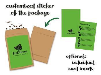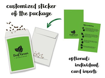 In order to give the greenpack a personal character, the sleeve around the box is personalized. This offers plenty of space for a green (advertising) message on the front and back. The plant seeds can be freely selected from our wide range.