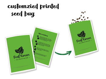 The greenpack seed packages are available in 3 different sizes and you can have your own design on the front even with smaller quantities.