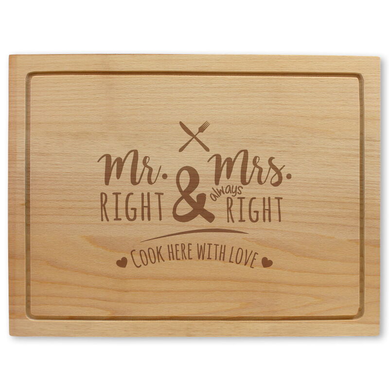 Our cutting board is also a special wedding gift, but can also be given to your better half on many other occasions, such as Valentine's Day, a birthday or Christmas! Thanks to the ideal size, delicious dishes and appetizers can be conjured up and served together. The boards are made of beautiful beech wood and are engraved using a high-quality laser process. It is well known that the way to someone’s heart is through their stomach!