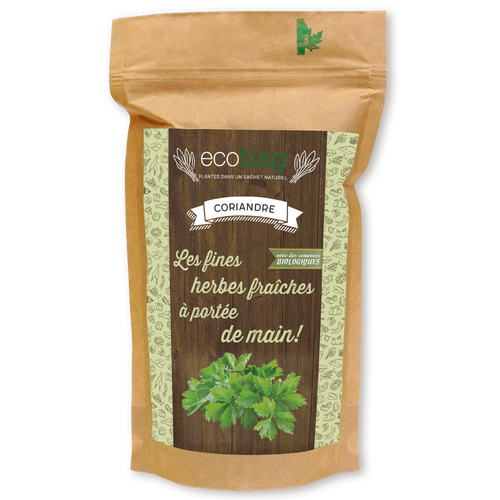 ecobag contient granulés de fibres de noix de coco, granulés d'argile et un paquet de semences.