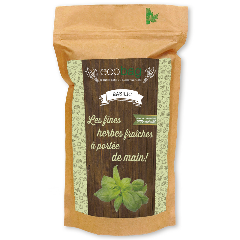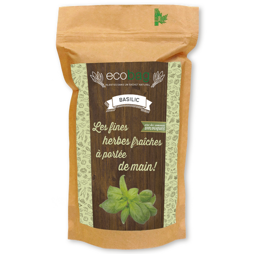 ecobag contient granulés de fibres de noix de coco, granulés d'argile et un paquet de semences.