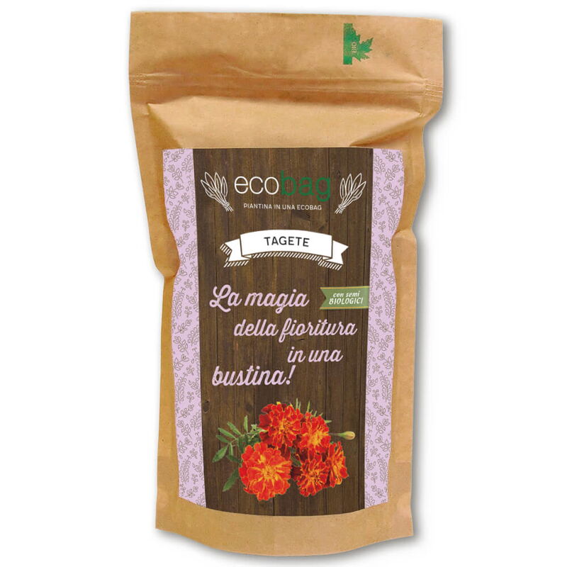 L'ecobag contiene granulato di fibra di cocco, granulato di argilla e sacchettino con i semi biologici certificati.