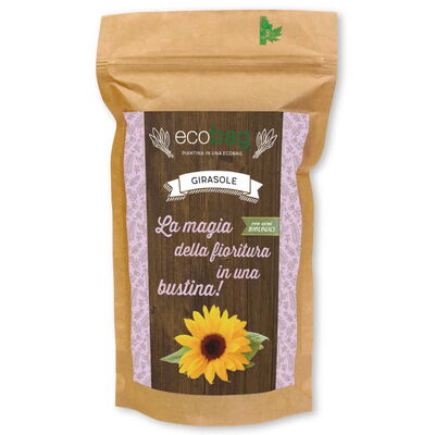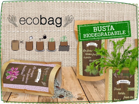 Taglia la busta per aprirla e distribuisci uniformemente i semi sul granulato. Innaffia e dopo pochi giorni vedrai germogliare la tua ecobag. Con un po' di cura vedrai crescere erbe aromatiche, fiorire i primi boccioli e nascere le prime verdure. Dopo pochi mesi, trasferisci la bustina in un nuovo vaso e lascia che la carta kraft si decomponga per trasformarsi in preziosi nutrienti per la tua piantina.