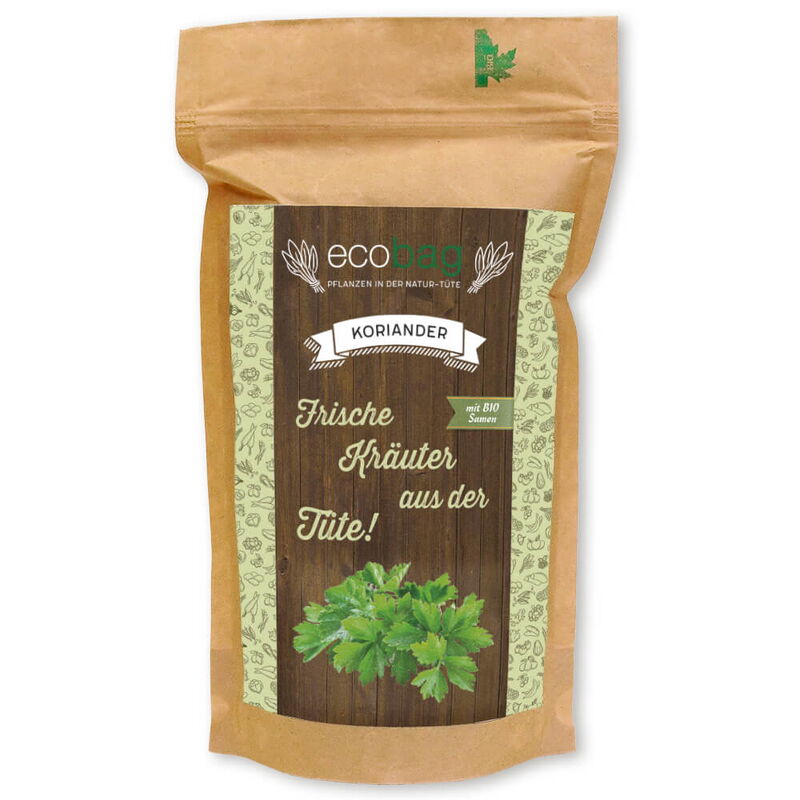• Nach rund 14-20 Tagen wird der Koriander zu keimen beginnen. ecobag weiterhin nur mäßig gießen.