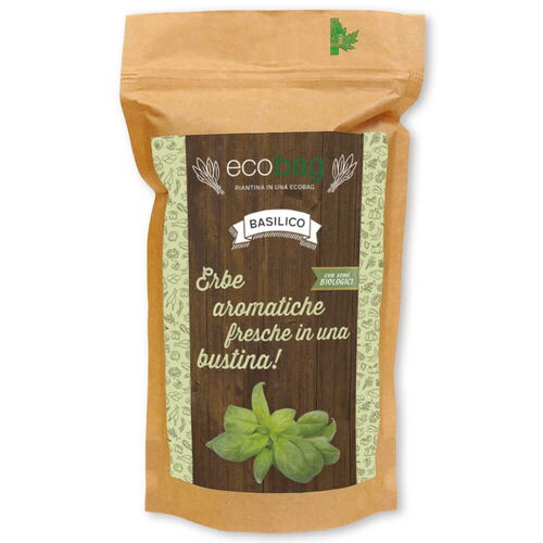 L'ecobag contiene granulato di fibra di cocco, granulato di argilla e sacchettino con i semi biologici certificati.
