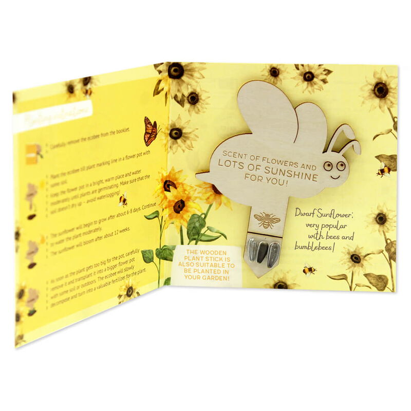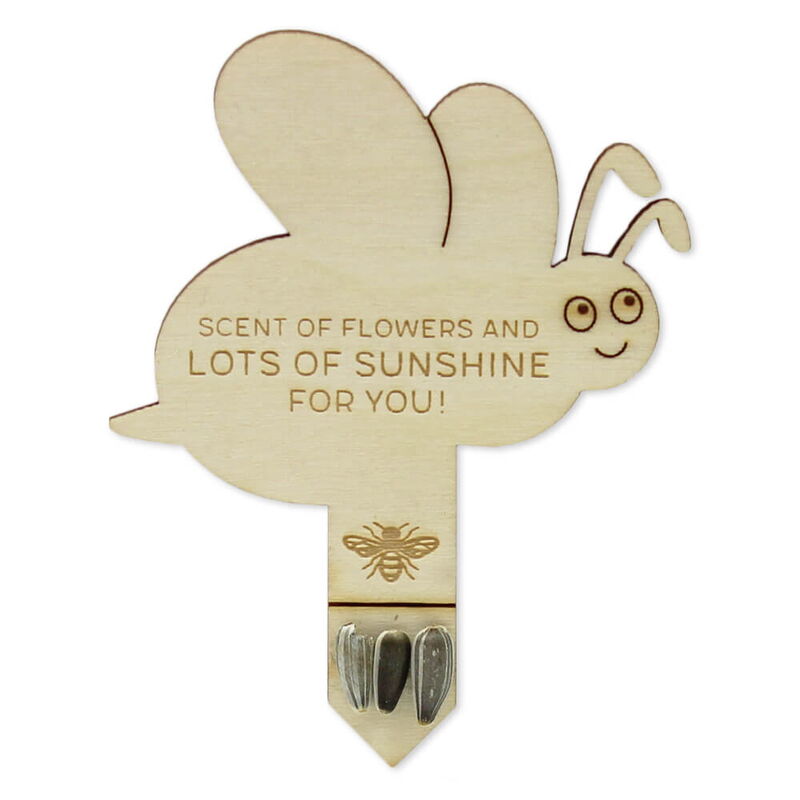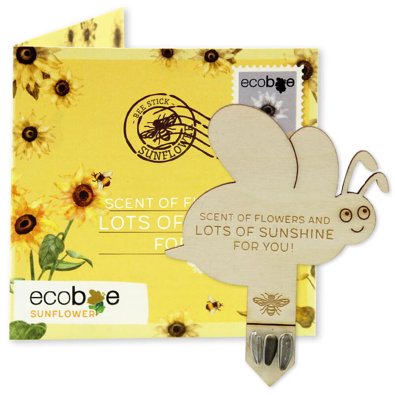 ecobee contains a wooden bee stick, eco-friendly glue and plant seeds.