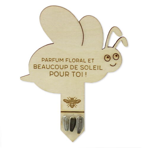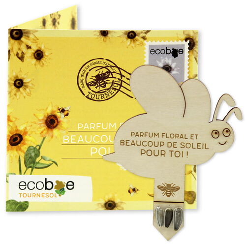 L'ecobee contient un marqueur en bois en forme d'abeille, de la colle écologique et des semences de plantes.