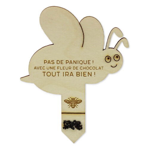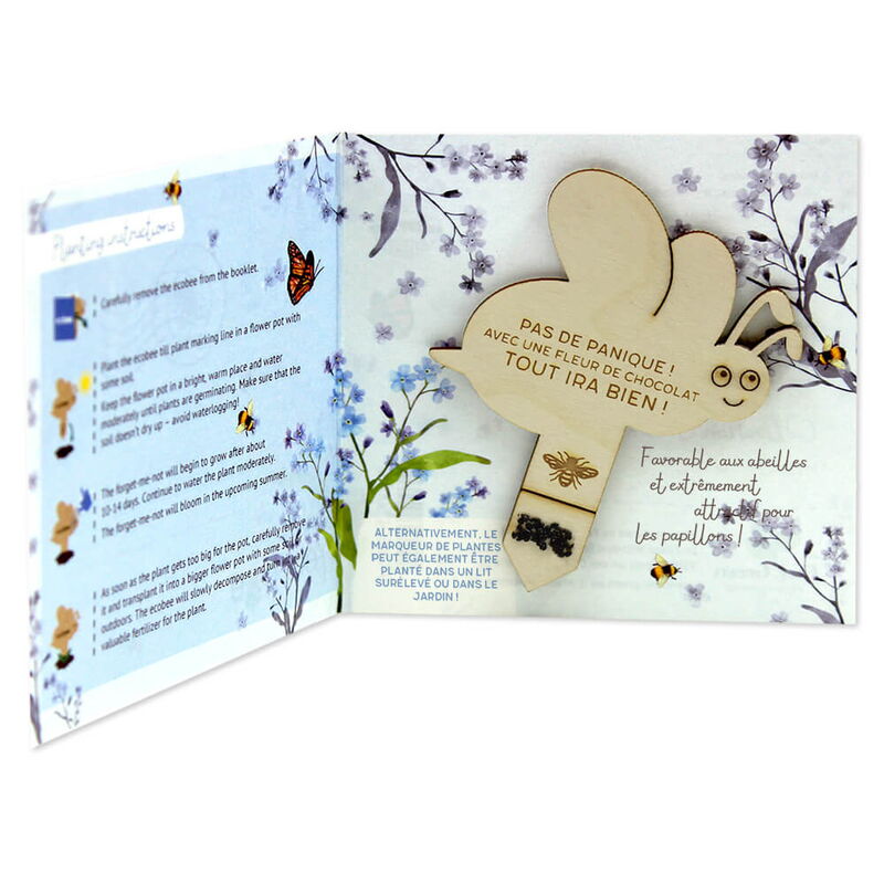 L'ecobee contient un marqueur en bois en forme d'abeille, de la colle écologique et des semences de plantes.