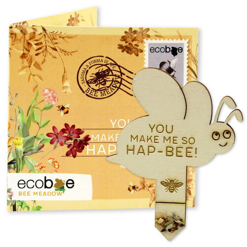 ecobee contiene sottile sagoma di legno a forma di ape, colla ecologica e semi-