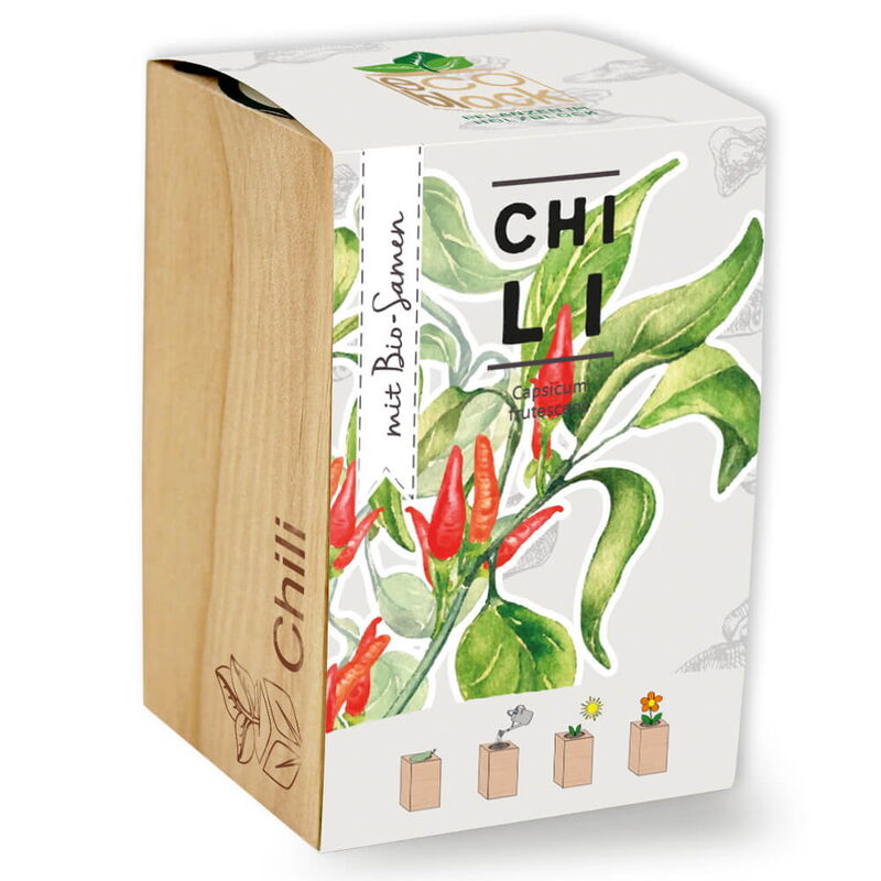 • Nach etwa 12-18 Tagen beginnt die Chilipflanze zu wachsen. ecoblock weiterhin nur mäßig gießen.