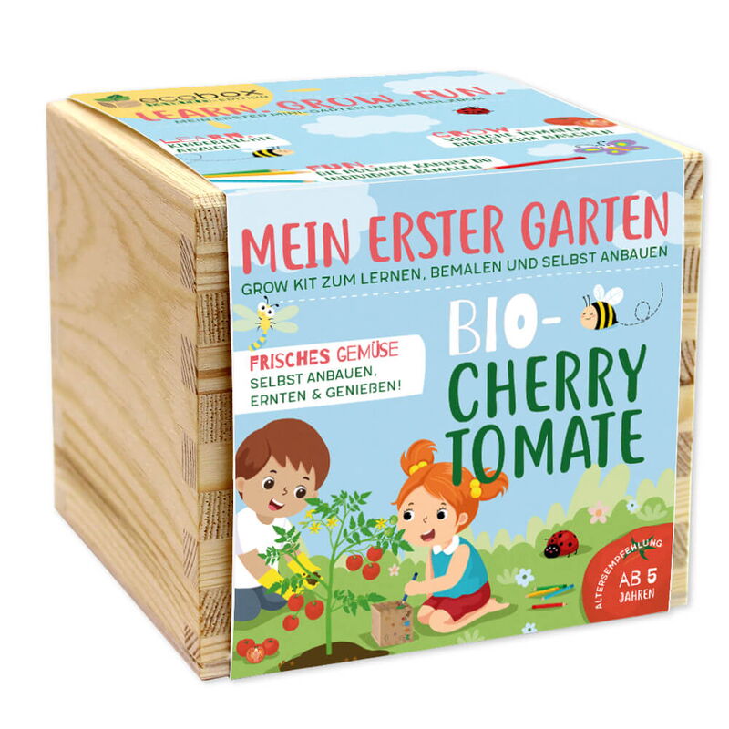 • Sobald deine Cherry Tomatenpflanze zu groß für die ecobox wird, kann die Pflanze mit dem kompostierbaren Anzuchttopf in einen Blumentopf mit etwas Erde oder ins Freie verpflanzt werden. Die Holzbox selbst kannst du dann z.B. als Stiftehalter, Geschenk- oder Spielzeugaufbewahrungsbox weiterverwenden!
