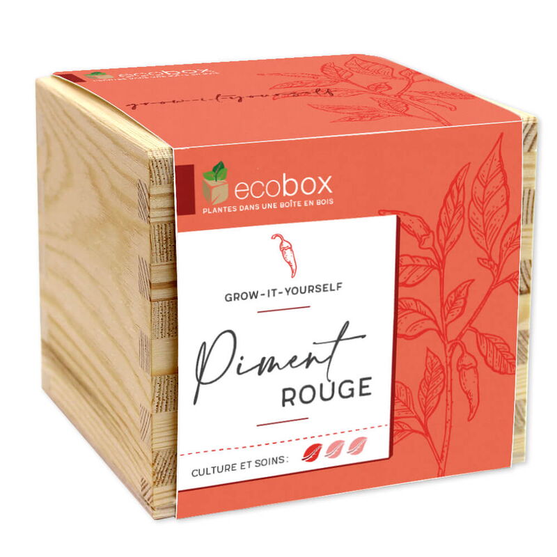 • Dès que la plante cultivée soi-même est trop grandes pour l'ecobox, il est possible de rempoter la plante de piment ainsi que le gobelet de culture biodégradable dans un pot de fleurs avec un peu de terre ou en plein air. La boîte en bois peut être ensuite utilisée comme porte-crayons par exemple ou comme boîte à cadeau !