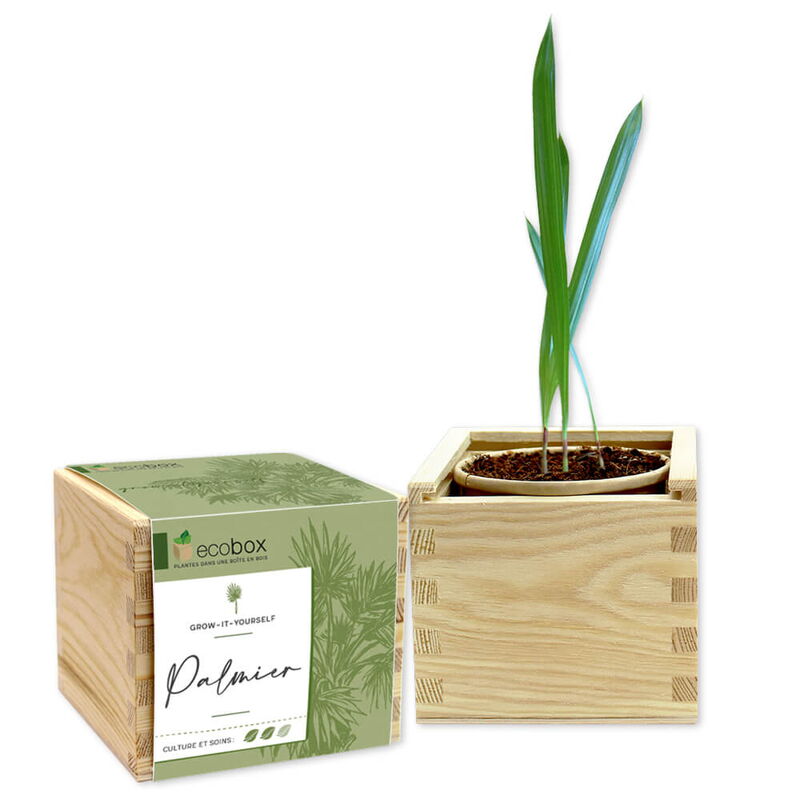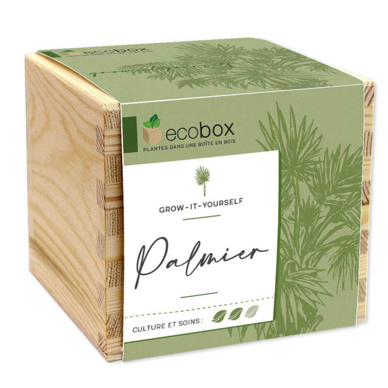 L'ecobox contient un gobelet de culture biodégradable, une pastille de fibres de noix de coco, un bâtonnet en bois pour le marquage et un sachet de semences de plantes.