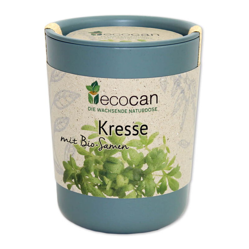 • Nach ca. 6-12 Tagen beginnt die Kresse zu wachsen. ecocan weiterhin nur mäßig gießen. Sobald die Kresse ca. 10 cm gewachsen ist, können die Blätter fortlaufend geerntet werden bis sich erste Blütenansätze zeigen.