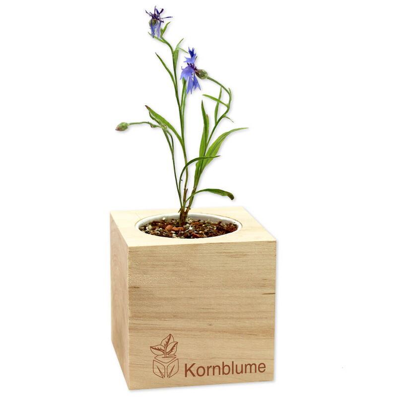 • Nach ca. 12-16 Tagen beginnt die Kornblume zu wachsen. ecocube weiterhin nur mäßig gießen.