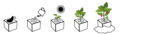 • Nach rund 12-18 Tagen beginnt die Chilipflanze zu wachsen. ecocube weiterhin nur mäßig gießen.
