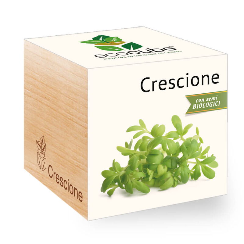 L'ecocube contiene granulato di fibra di cocco, granulato di argilla, vasetto compostabile e semi.