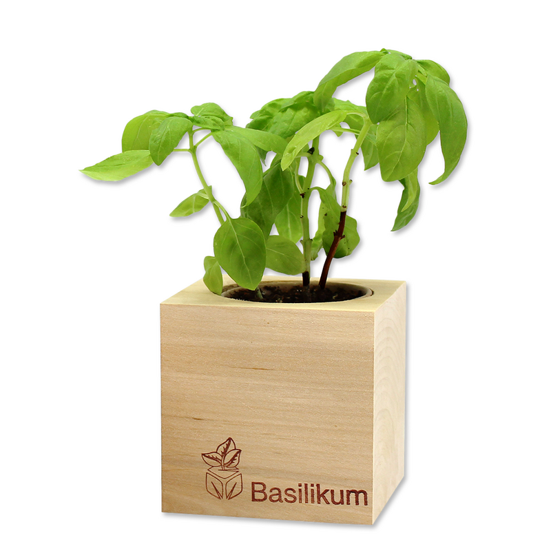 • Sobald die Pflanze zu groß für den ecocube wird (nach etwa 6-8 Monaten), kann der gesamte Würfel in einen Blumentopf mit etwas Erde oder ins Freie verpflanzt werden. Der ecocube wird langsam kompostiert und zu wertvollem Dünger für die Pflanze. Alternativ kann auch nur die Pflanze mit dem kompostierbaren Bechereinsatz verpflanzt werden. Der ecocube kann danach z.B. als Stiftehalter benutzt werden!