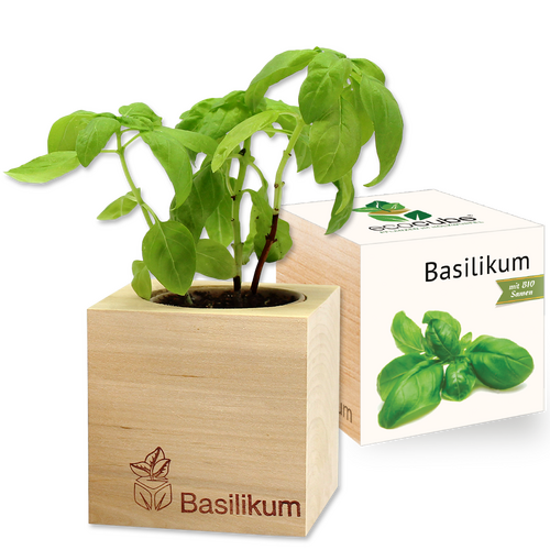 ecocube enthält Kokosfasergranulat, Tongranulat, kompostierbaren Anzuchttopf und Pflanzensamen.