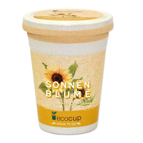 • Nach ca. 6-8 Tagen beginnen die Sonnenblumen zu wachsen. ecocup weiterhin nur mäßig gießen.