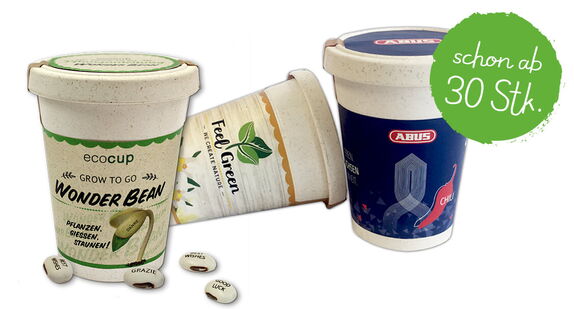 ecocup enthält Kokosfasergranulat, Tongranulat und Pflanzensamen.