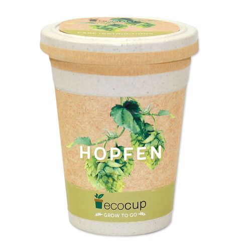 • Nach ca. 14-20 Tagen beginnt der Hopfen zu wachsen. ecocup weiterhin nur mäßig gießen.