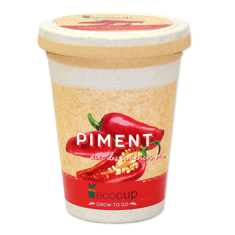 ecocup contient granulés de fibres de noix de coco, granulés d'argile et semences de plantes.