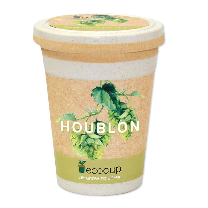 ecocup contient granulés de fibres de noix de coco, granulés d'argile et semences de plantes.