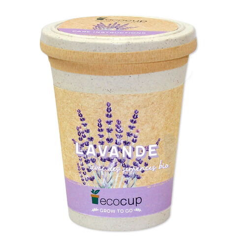 ecocup contient granulés de fibres de noix de coco, granulés d'argile et semences de plantes.