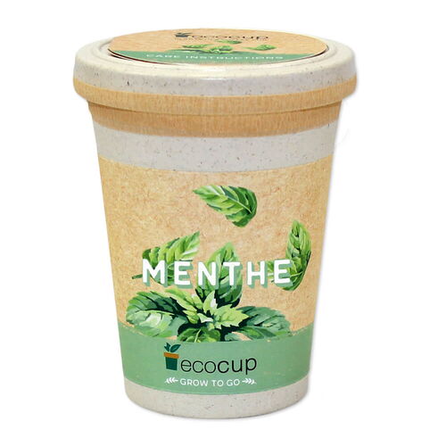 ecocup contient granulés de fibres de noix de coco, granulés d'argile et semences de plantes.