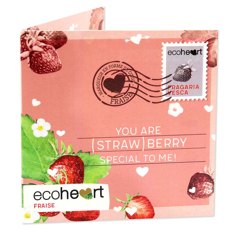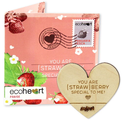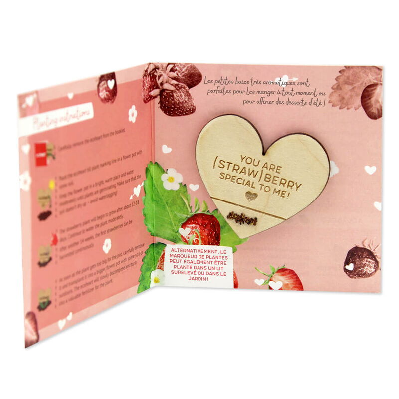 L'ecoheart contient un marqueur en bois en forme de cœur, de la colle écologique et des semences de plantes.