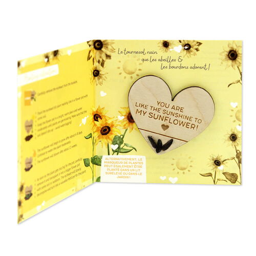 L'ecoheart contient un marqueur en bois en forme de cœur, de la colle écologique et des semences de plantes.