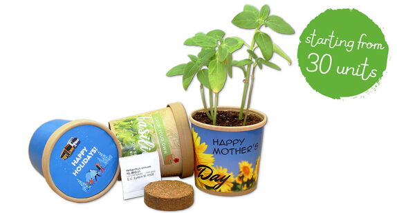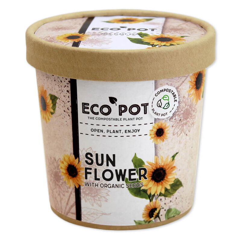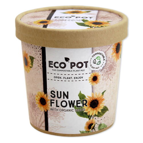 • As soon as the sunflower gets too big for the ecopot, remove the paper sleeve and transplant the entire ecopot in a regular flower pot with soil or outdoors.