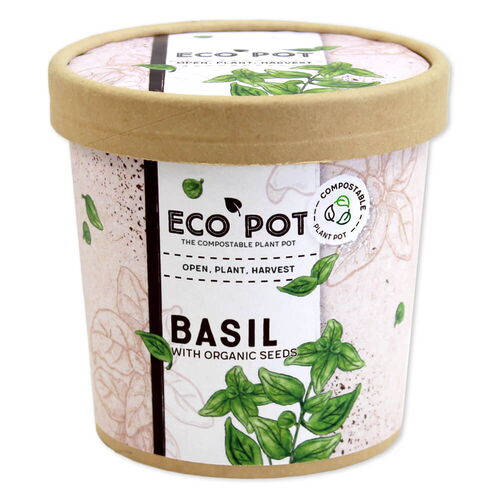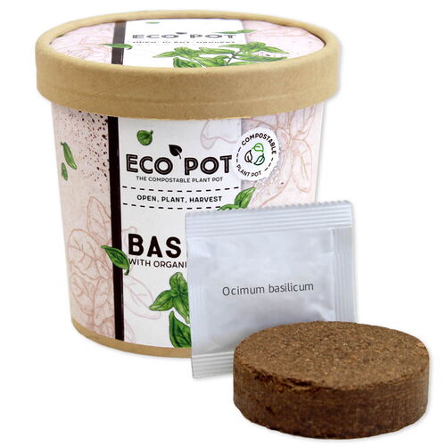 ecopot contains a small set of biodegradable pot, coconut fiber tabs and a plant seed package.
