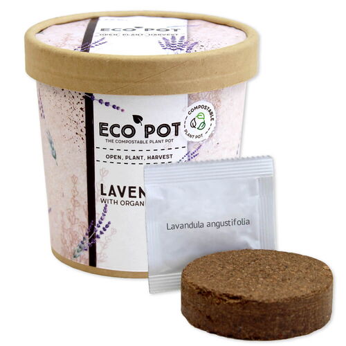 ecopot contains a small set of biodegradable pot, coconut fiber tabs and a plant seed package.