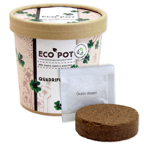 ecopot contiene set composto da vaso per piante compostabile, compresse in fibra di cocco e sacchettino con i bulbi.